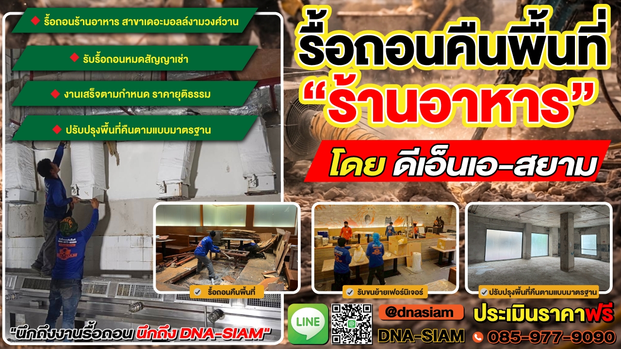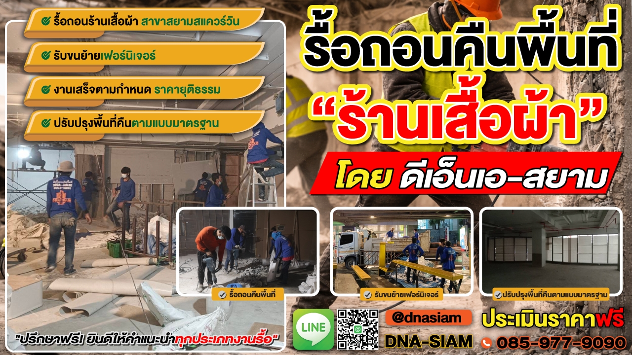 หากคุณกำลังมองหาบริการรับรื้อถอนร้านค้าเพื่อคืนพื้นที่ให้กับศูนย์การค้าของคุณอยู่ เราคือผู้เชี่ยวชาญด้านการรื้อถอนร้านค้า ร้านอาหาร พร้อมบริการรื้อถอนครบวงจร รวดเร็ว ประหยัด ปลอดภัย ไปจนถึงการปรับปรุงพื้นที่ให้พร้อมส่งคืนฝ่ายอาคาร เรามีทีมงานมืออาชีพที่มีประสบการณ์กว่า 10 ปี พร้อมได้รับความไว้วางใจจากศูนย์การค้าชั้นนำทั่วประเทศ รับประกันความพึงพอใจในทุกขั้นตอนการบริการ ติดต่อเรา ดีเอ็น สยาม 085-977-9090